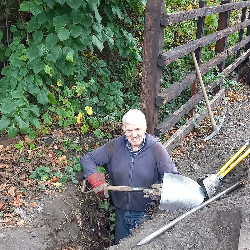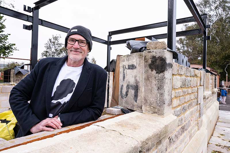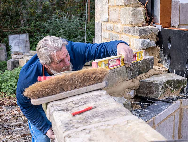 Jim Noble trys out a window cill for size - 26-Oct-25. Photo: F Dumbleton
